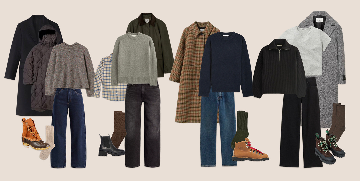 I’ll admit that I used to be that person that carried nicer shoes in my bag to change into at the office. But as life has grown more chaotic and as I’ve started to care a lot less, instead I’ve just leaned into the winter boot aesthetic. I dress a little more rugged to match the vibe, usually with denim and just a Big Ass Sweater. Think…upstate. But fashion.