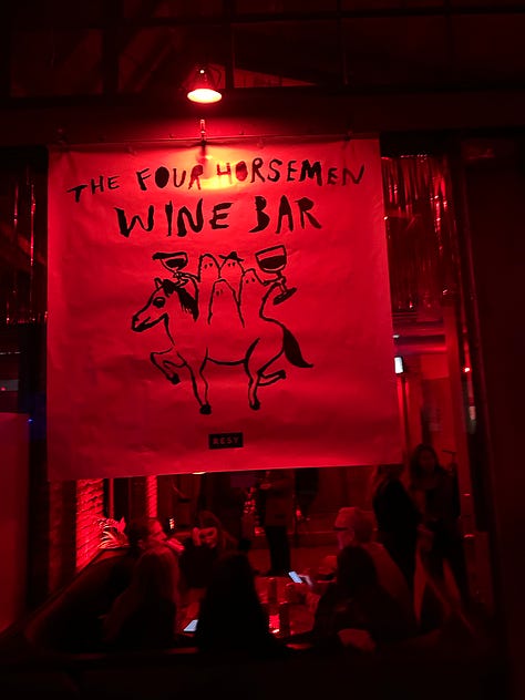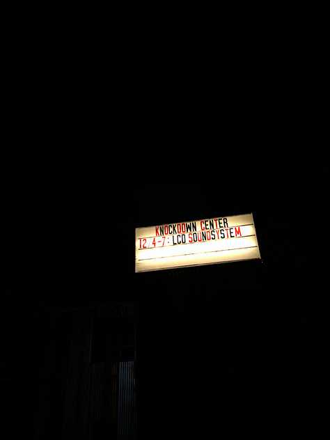 The older I’ve gotten the less interested in concerts I’ve become. I think it’s because they start too late, and often the crowds feel like too much. They are expensive, and I don’t like shoving my way through masses of people to get myself an overpriced drink or to use a urine covered toilet. But each and every year I make it a point to go to the LCD Soundsystem residency. Formerly held at Brooklyn Steel, it moved to Knockdown Center last year, and in the move they were able to add a wine bar pop up of James Murphy’s The Four Horseman (my favorite restaurant, holds many fond memories), which is great for us olds that don’t want a shitty beer and instead prefer a nice glass of natural wine and a place to sit and rest our feet, you know? But at the end of the day, being there always reminds me that it is, in fact, good for the soul to get out of the house, see the clock hit 10 pm, and dance wildly to some great music with total strangers. (Though I’d love a 6 pm, 30+ option for shows moving forward, if anyone out there is listening and can make that happen.)